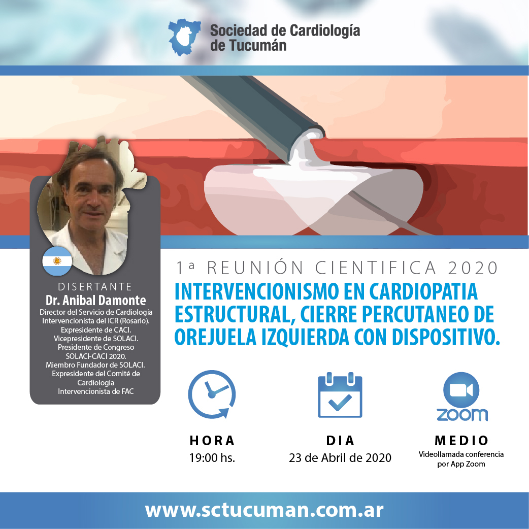 Se realizará la primera reunión científica del año con la temática: «Intervencionismo en Cardiopatia estructural, cierre percutáneo de orejuela izquierda con dispositivo»